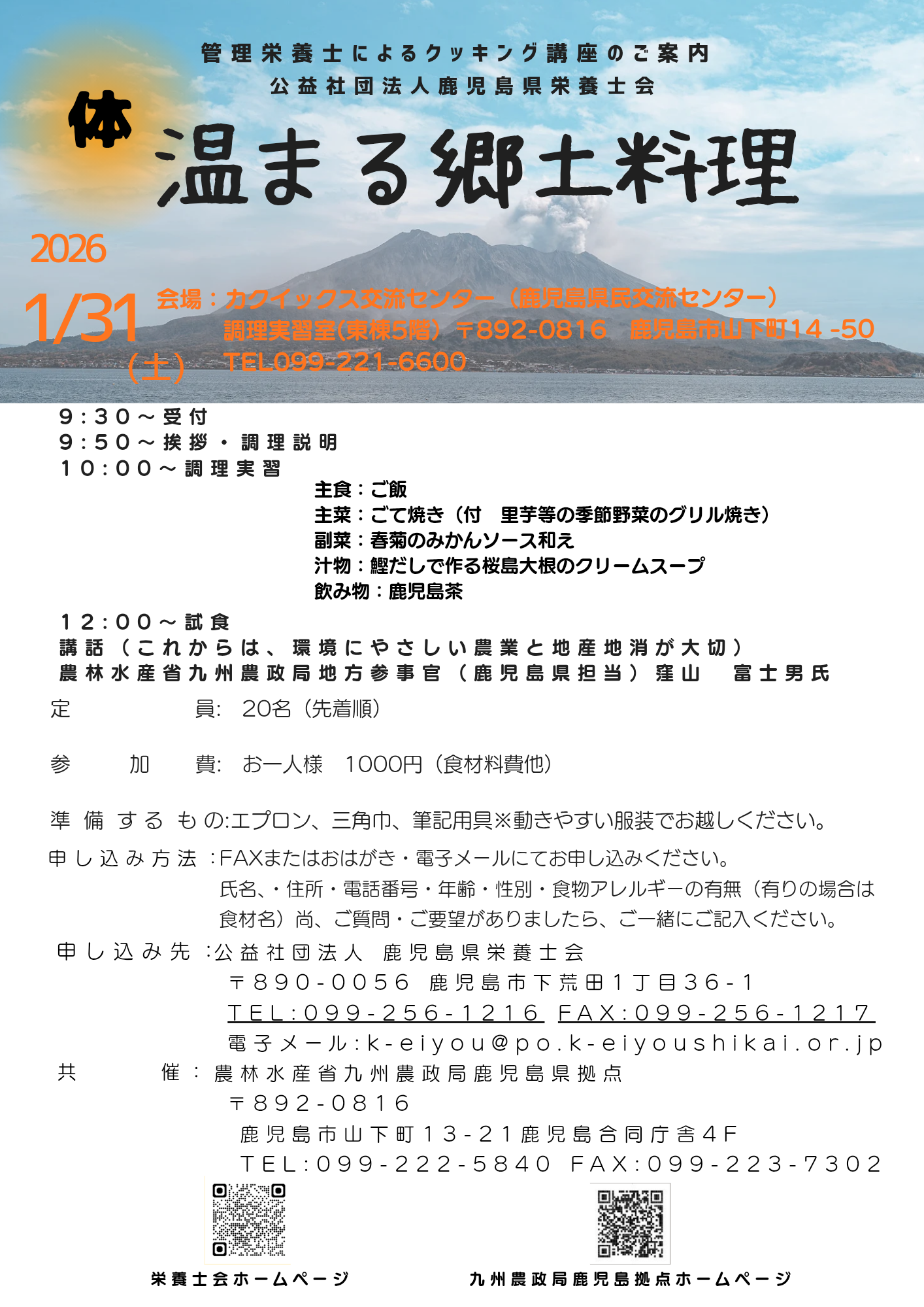 (公社)鹿児島県栄養士会主催 第15回県民公開講座のご案内